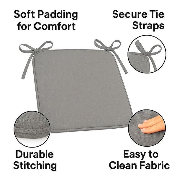 Wooden kitchen and dining room chairs are lovely to look at but are often uncomfortable to sit on. The answer is these soft and comfy seat pads. They have ties to attach them to the chair and are easy to clean by sponging. In glamourous grey they will fit right in with any colour scheme.