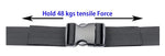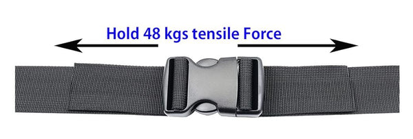 Each buckle has passed over 3,000 tensile strength tests and can withstand up to 48 kg (106 lbs) of pulling force.